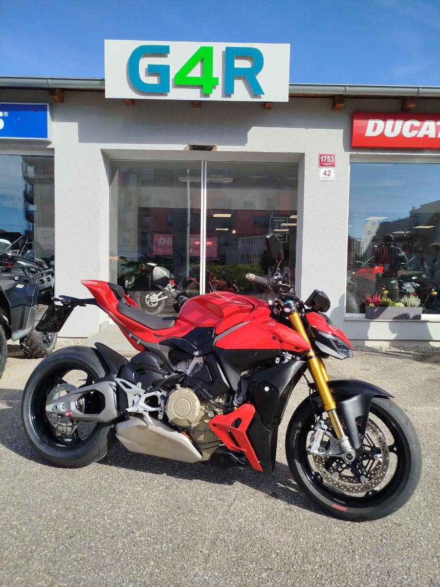 Nabízíme k prodeji letošní model Ducati Streetfighter V4S (verze s elektronickým podvozkem). Rok 2025, najeto pouze: 5 783 km. Motocykl zakoupen letos u nás jako nový tedy po prvním majiteli. Plná tovární záruky, 2x klíče, manuál, elektronický záznam ze servisu. Proveden 1. garanční servis samozřejmě u nás v autorizovaném prostředí, rádi doložíme. Nová zadní pneu, tankpad nádrže, mřížky chladiče. Motorka po lehkém pádu v minimální rychlosti viz foto jinak v krásném stavu. PC: 680 000, Kč nyní podzimní super cena.