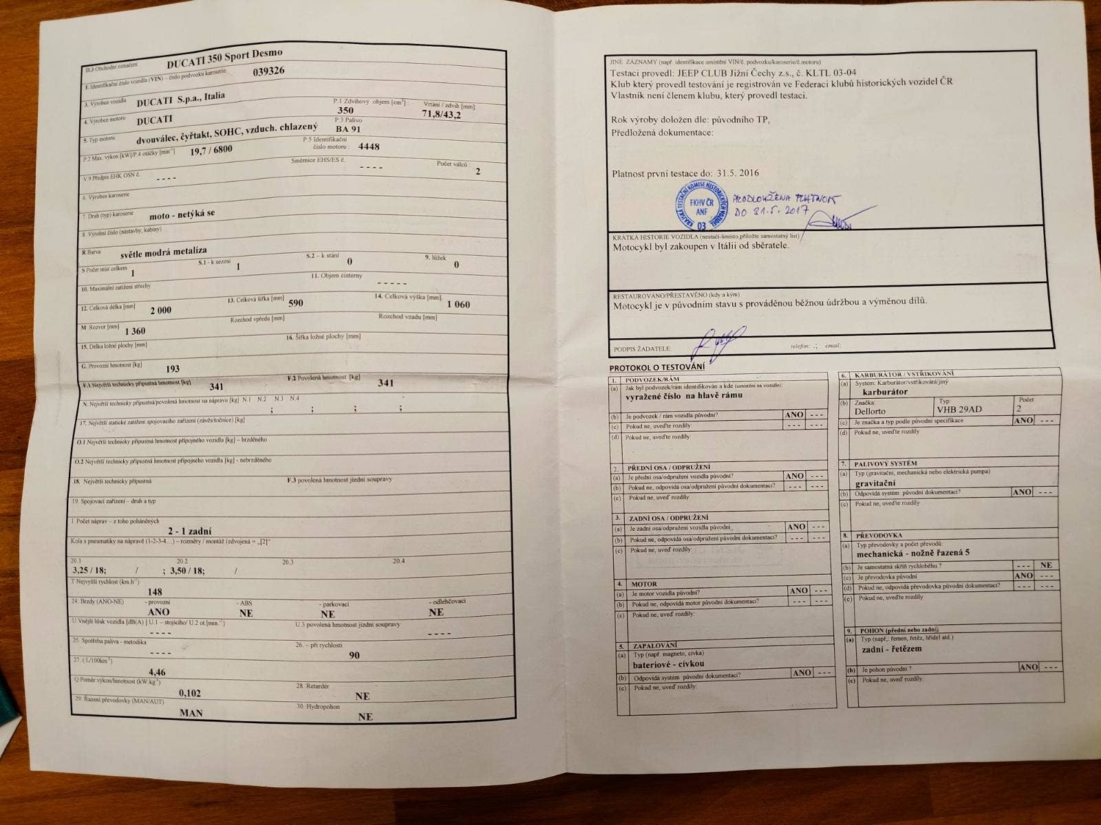 350 Sport Desmo, Veteránské SPZ, Krásný stav