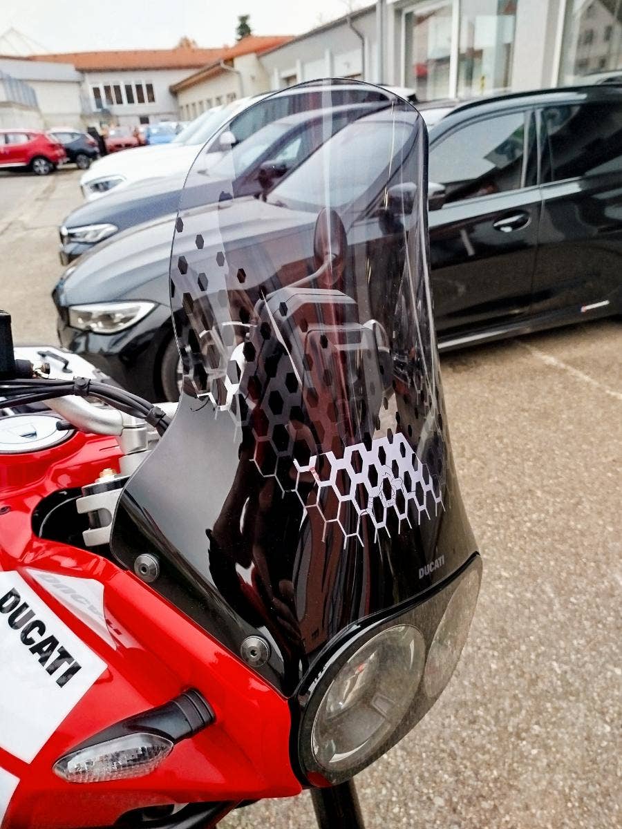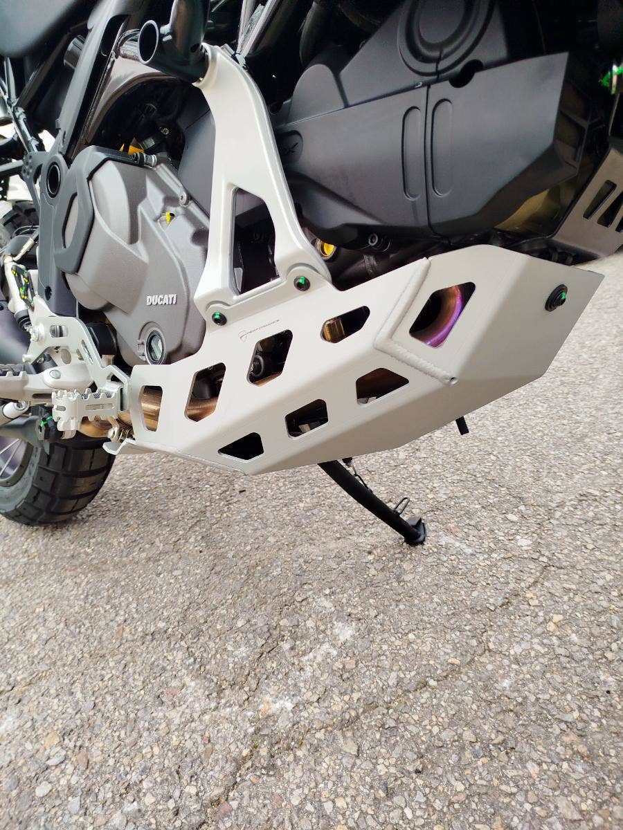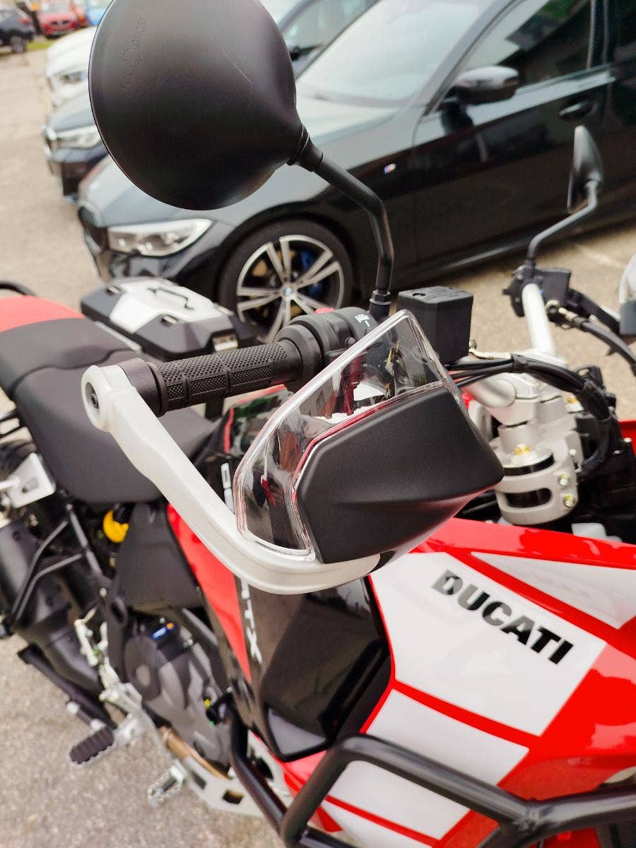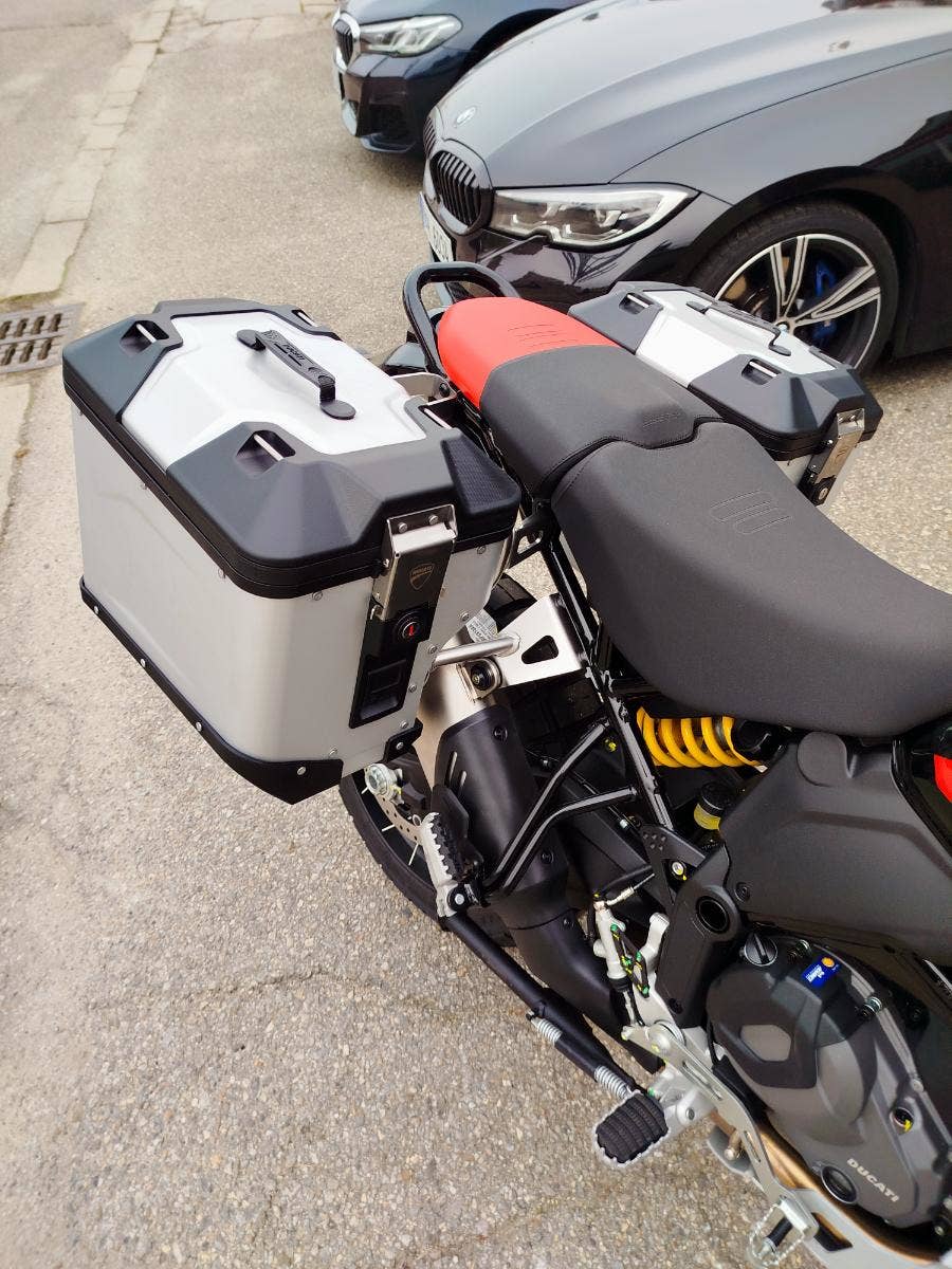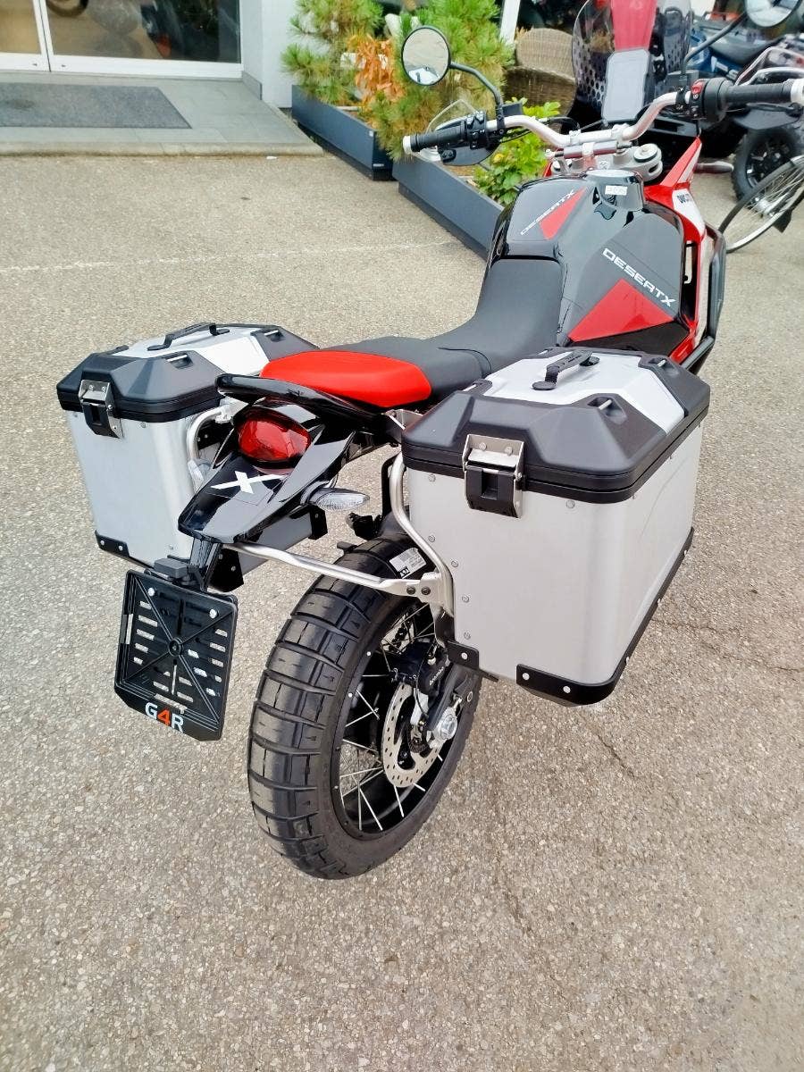 Nová a v základu nadstandardně vybavená verze už tak oblibéného DesertX nyní s názvem DesertX Discovery. V základním balíčku si DesertX Discovery poveze: rozšíření krytů rukojetí včetně pevnější konstrukce, výhřev rukojetí, navigaci Turn by Turn, cestovní plexi, sadu dvou bočních hliníkových kufrů včetně potřebné montážní sady, hlavní stojan, kryt pod motor, mřížku chladiče a pevný padací rám. Opravdu bohatá výbava díky, které se můžete vydat prakticky kamkoliv bez kompromisů. Průzkum. Zábava. Výkon. A opravdová chuť vyrazit a zamířit k horizontu. Identita tohoto motocyklu nenechává žádné pochybnosti – stačí jediný pohled a budete snít o dobrodružství. A s výbavou DesertX Discovery můžete ještě volněji prozkoumávat neprozkoumané, bez překážek. Výbava DesertX Discovery obsahuje speciální povrchovou úpravu Thrling Black a Ducati Red vytvořenou s lepicí grafikou, která chrání povrchy před poškrábáním, a komplexní balíček standardního příslušenství, aby byla ještě lépe vhodná pro průzkum.