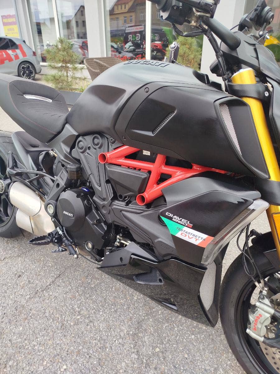 Nabízíme k prodeji krásnou Ducati Diavel 1260 S z roku 2019 a nájezdem 15 118 km. Motorka zakoupená jako nová v autorizovaném dealerství v DE následně v ČR jeden majitel. Motocykl s pravidelnou bohatou servisní historií pouze z autorizovaného dealerství Ducati, rádi doložíme. Nejoblíbenější verze s motorem 1260 s podvozkem ÖHLINS. Motorka s jasným původem a doloženou historií.
