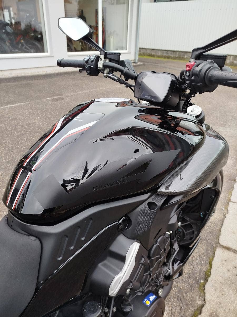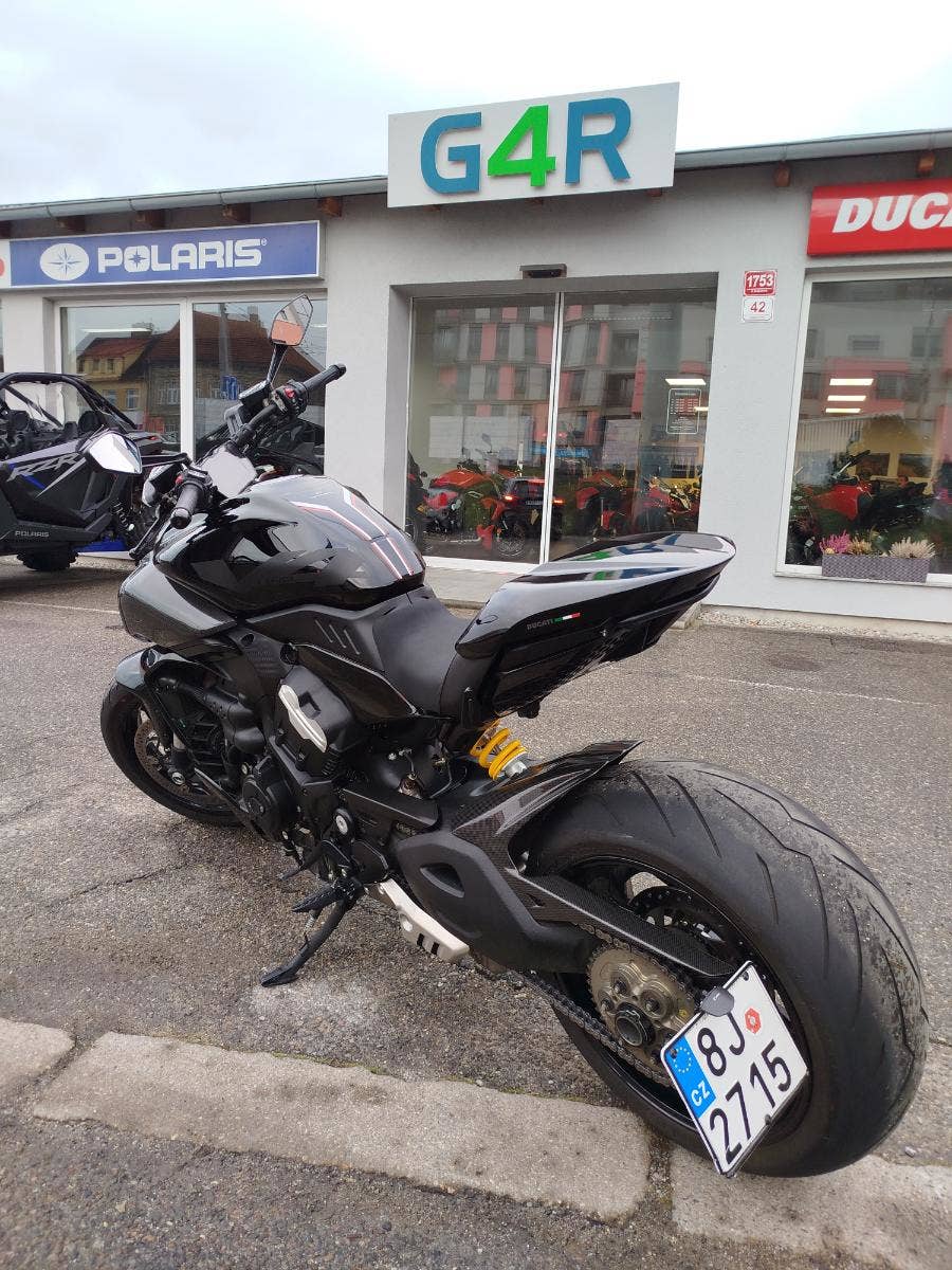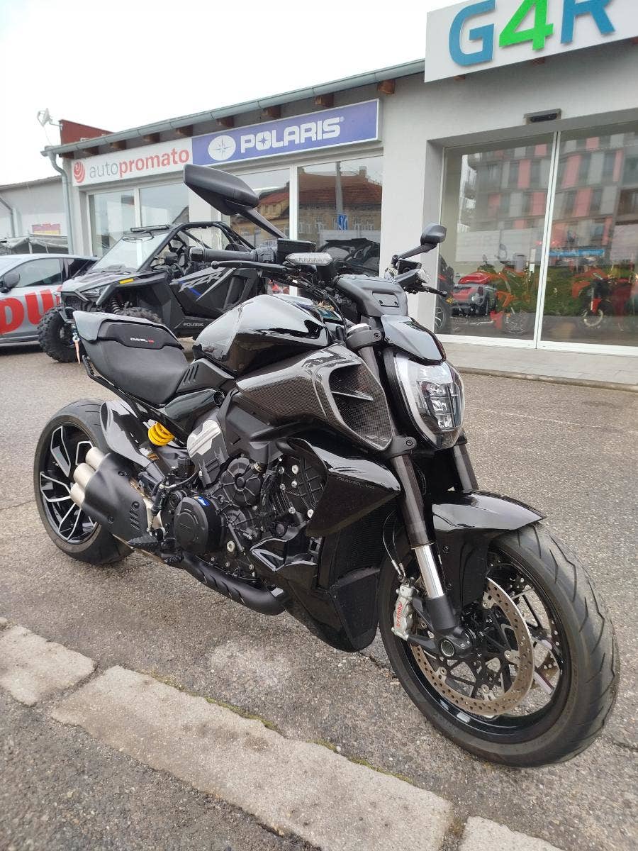 Nabízíme k prodeji krásnou Ducati Diavel V4 z roku 2024 a nájezdem 3 754 km. Motocykl zakoupen jako nový u nás v autorizovaném dealerství Ducati. Pouze jeden majitel, tovární záruka a možnost odpočtu DPH. 2x klíče, elektronický záznam ze servisní knihy. Bohatá výbava čítající: karbonové boční nádechy, karbonový zadní blatník, tankpad nádrže, boční držák SPZ Rizoma, matice DBK a miniblikry pod sedlem. Motorka je v krásném a nepoškozeném stavu. Jasná historie, původ i servis.