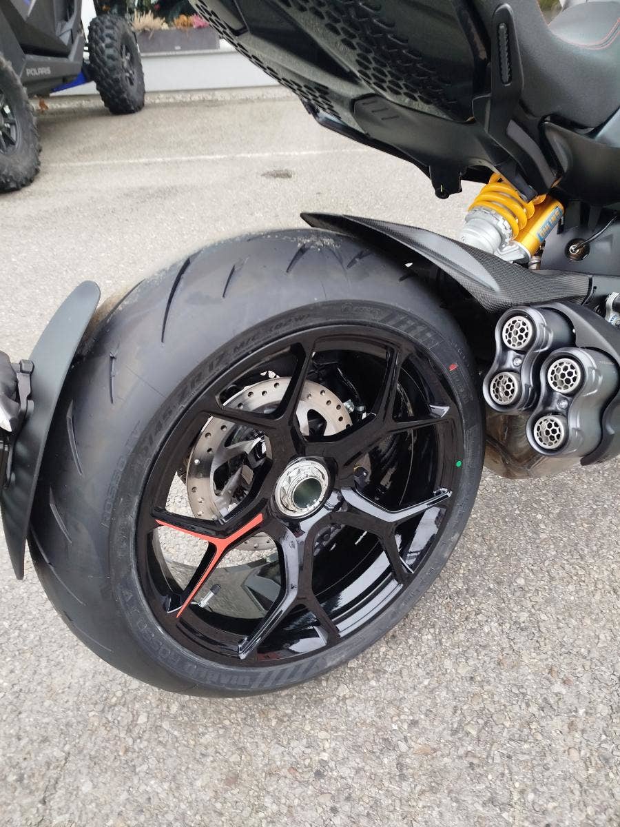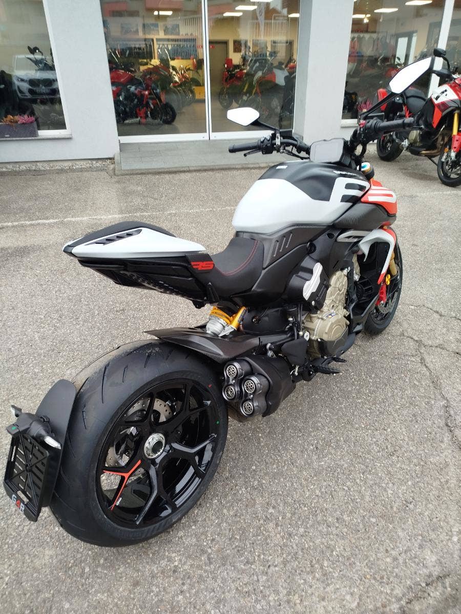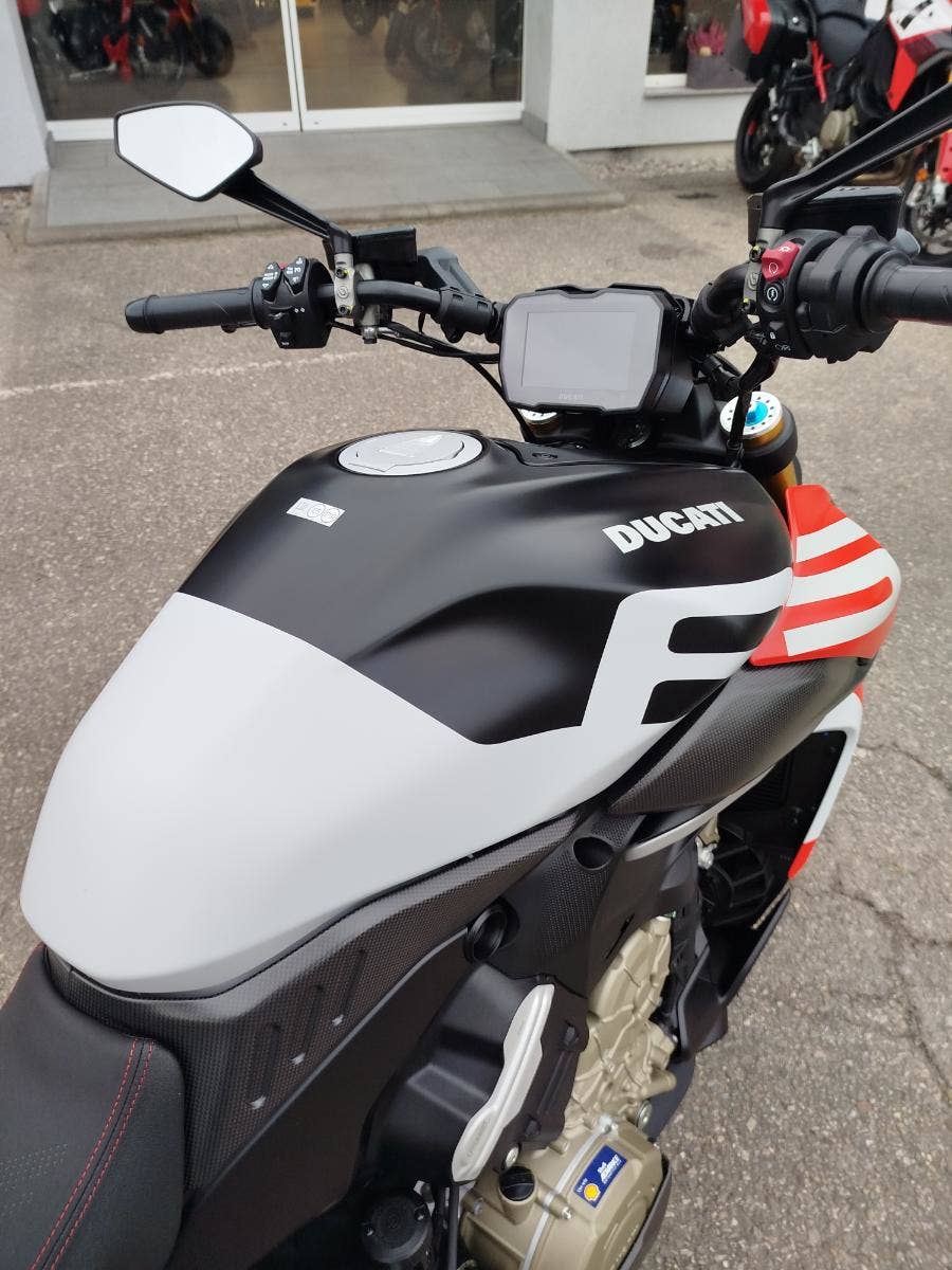 Z 0 na 100 km/h za pouhé 2,5 sekundy: rychlost je nově definována s Diavelem V4 RS. Závodní DNA Ducati vstupuje do světa Diavelu v číslované edici. Motor Desmosedici Stradale, součástky vyrobené z vysoce kvalitních materiálů, spousta karbonu a elektronika převzatá ze supersportovních motocyklů. Agilní, výkonný, lehký. Díky pokročilému podvozku, motoru Desmosedici Stradale a použití prvků snižujících celkovou hmotnost slibuje Diavel V4 RS ještě citlivější a přesnější jízdní dynamiku a neutrální a stabilní chování v zatáčkách. Nezaměnitelná silueta a agresivní barevné schéma. To prostě chceš!
