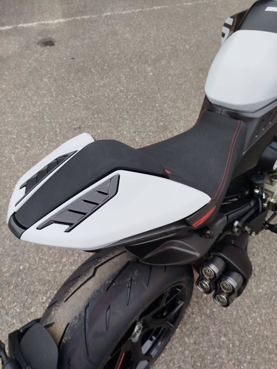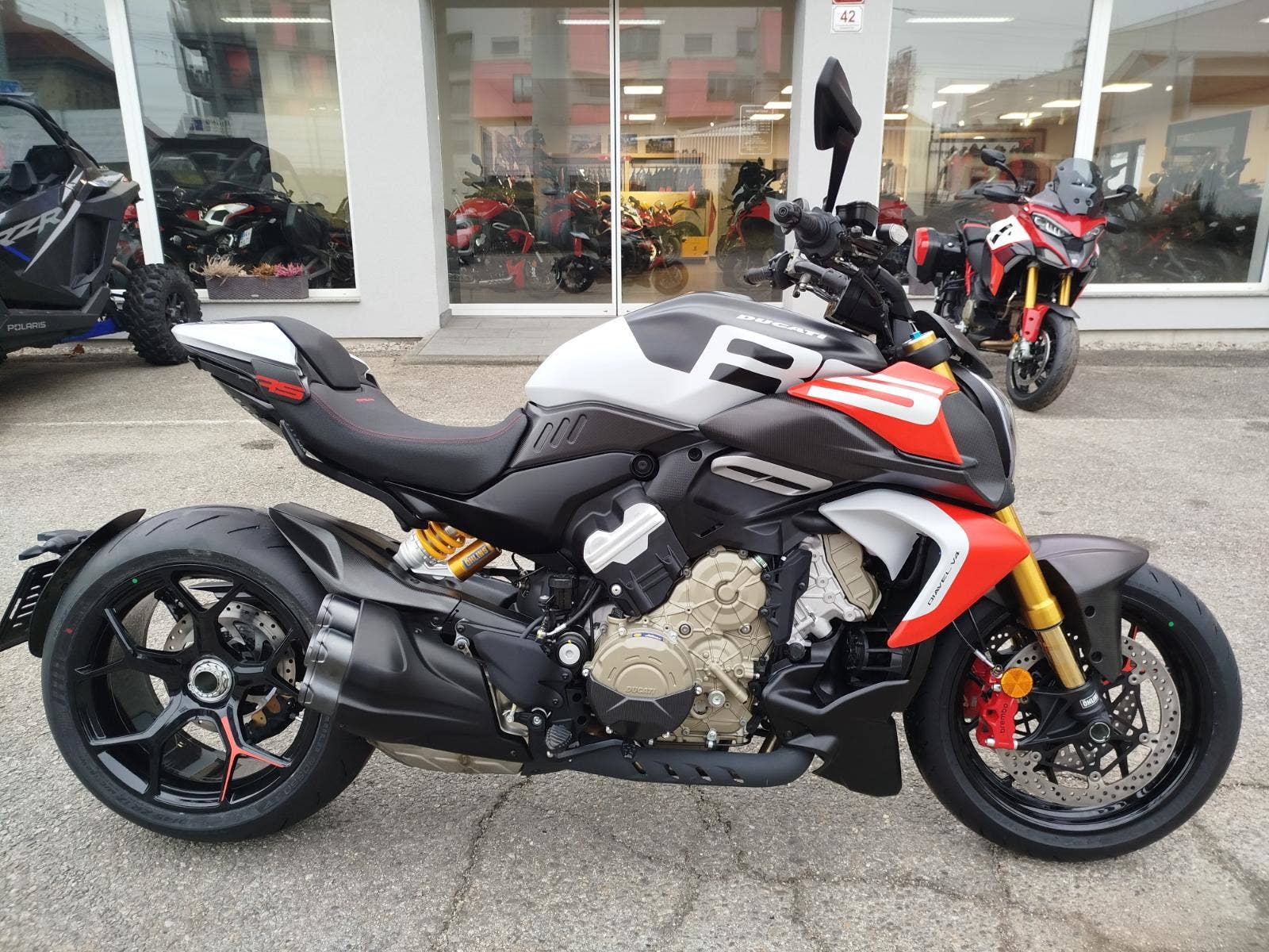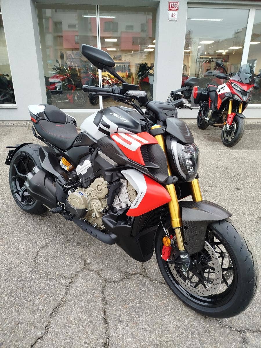 Z 0 na 100 km/h za pouhé 2,5 sekundy: rychlost je nově definována s Diavelem V4 RS. Závodní DNA Ducati vstupuje do světa Diavelu v číslované edici. Motor Desmosedici Stradale, součástky vyrobené z vysoce kvalitních materiálů, spousta karbonu a elektronika převzatá ze supersportovních motocyklů. Agilní, výkonný, lehký. Díky pokročilému podvozku, motoru Desmosedici Stradale a použití prvků snižujících celkovou hmotnost slibuje Diavel V4 RS ještě citlivější a přesnější jízdní dynamiku a neutrální a stabilní chování v zatáčkách. Nezaměnitelná silueta a agresivní barevné schéma. To prostě chceš!