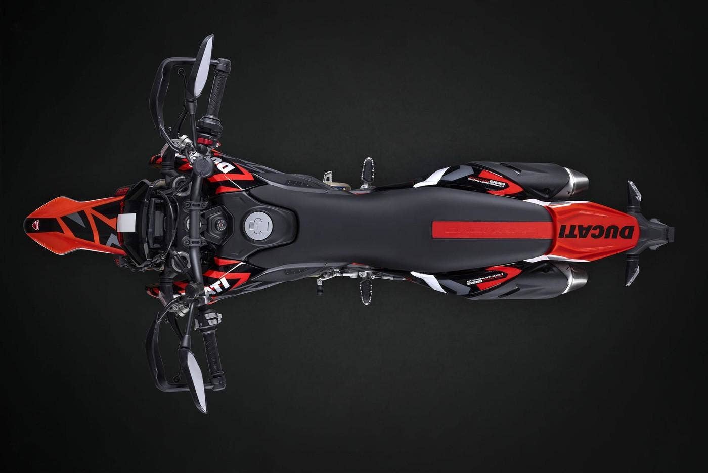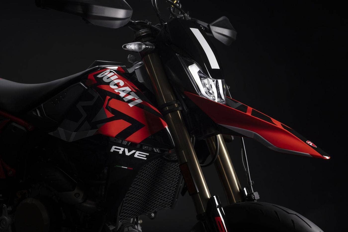 Skutečný supermotard je jednoválec. A to je vše. Jednoduchý, kompaktní, štíhlý a agresivní. Design Hypermotardu 698 Mono se soustředí na tyto prvky, které se snoubí se sofistikovanými a čistými liniemi, kterými vyniká každá Ducati. Ve verzi RVE je design zdůrazněn zbarvením ve stylu graffiti.