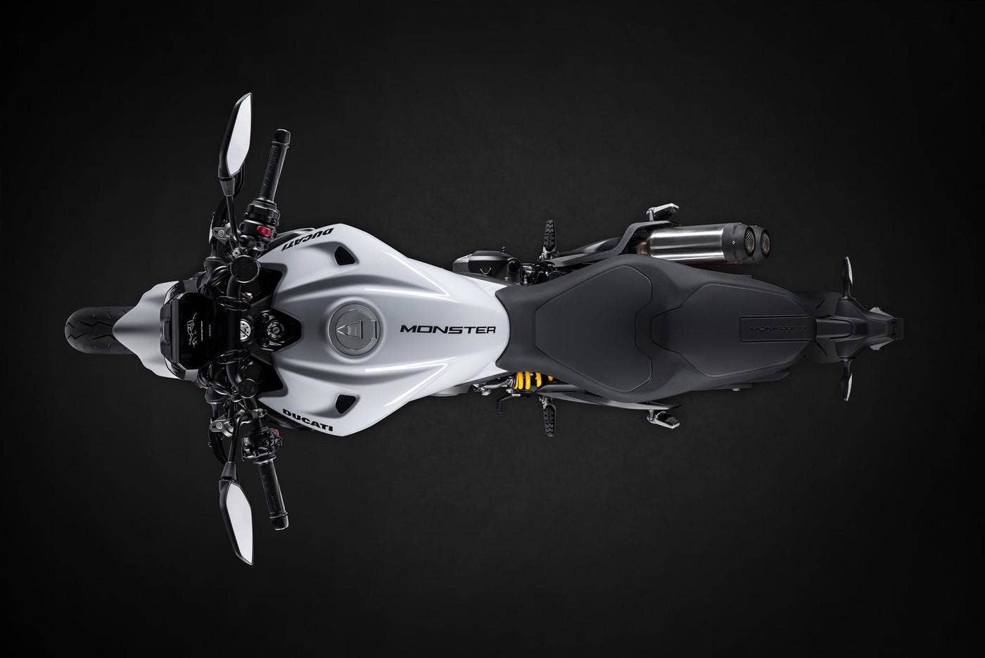 Nový Monster je o 4 kg lehčí než předchozí generace. Detaily připomínají jeho kořeny, ale zároveň se stylem a technologiemi, které jsou až futuristické. Nový světlomet ve tvaru dvojitého písmene C dodává Monsteru výrazný vzhled: robotický a moderní. Je navržen tak, aby byl ultrakompaktní, aby motorka zůstala krátká. Boční panely pod nádrží nechávají vyniknout čistým liniím stroje, mají ale také povrchovou texturu, která zajišťuje lepší kontakt jezdce s motocyklem. Design a funkce v souladu, jak je pro Ducati typické.