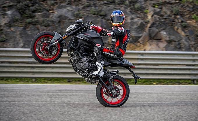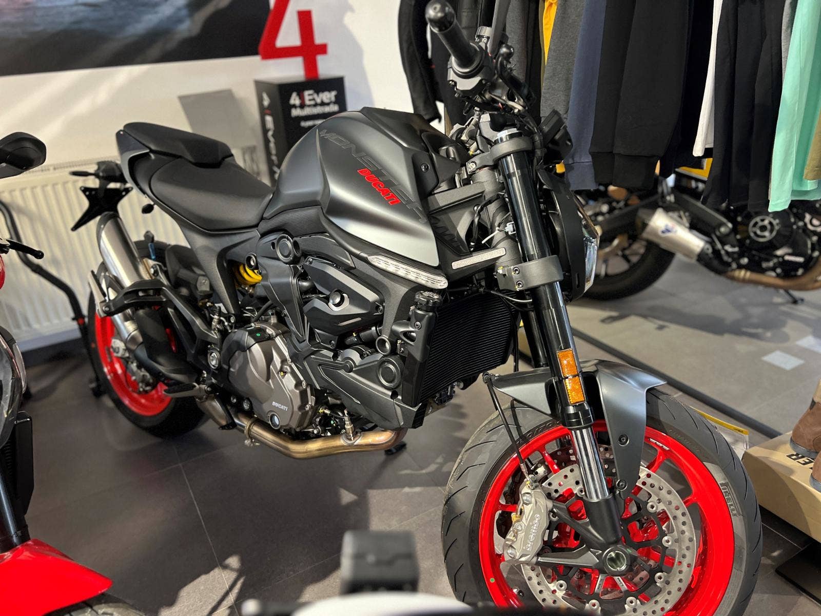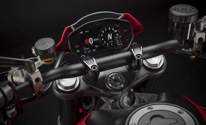 Součástí elektronické výbavy nového Monsteru je plně nastavitelné ABS s funkcí brždění v náklonu (Cornering ABS), kontrola trance a kontrola zvedání předního kole (Wheelie control). Sportovní charakter motocyklu podtrhuje funkce Launch Control, která umožňuje bleskurychlé starty. Vyjímečné technologie obvykle vyhrazené supersportovním motocyklům se v nové Monsteru nabízí všem nadšencům s jediným cílem - dosáhnout prvotřídní zábavy při jízdě.