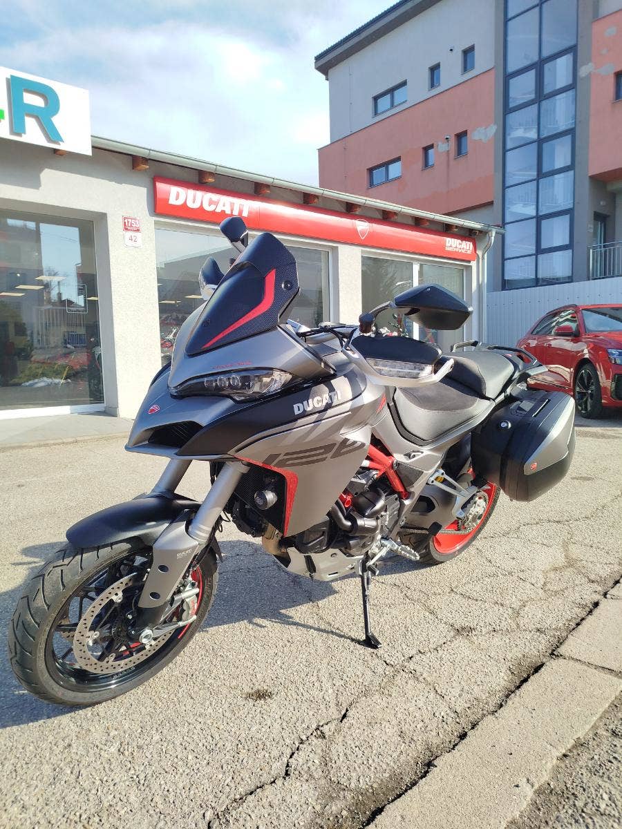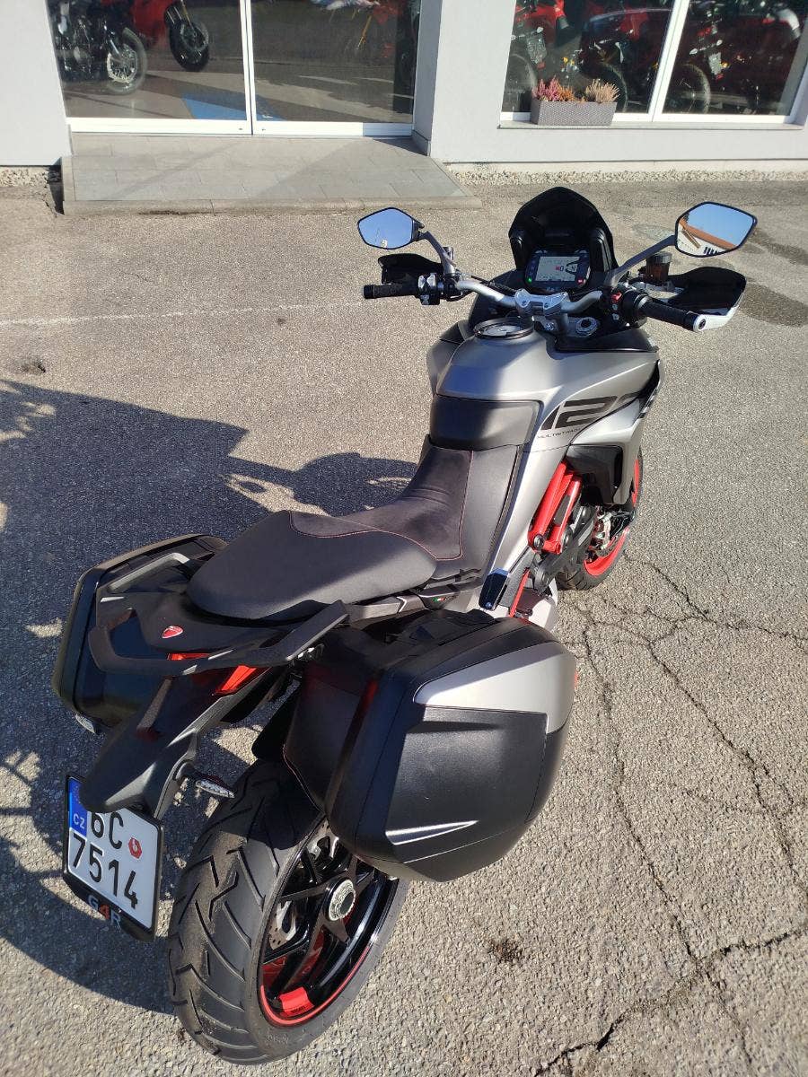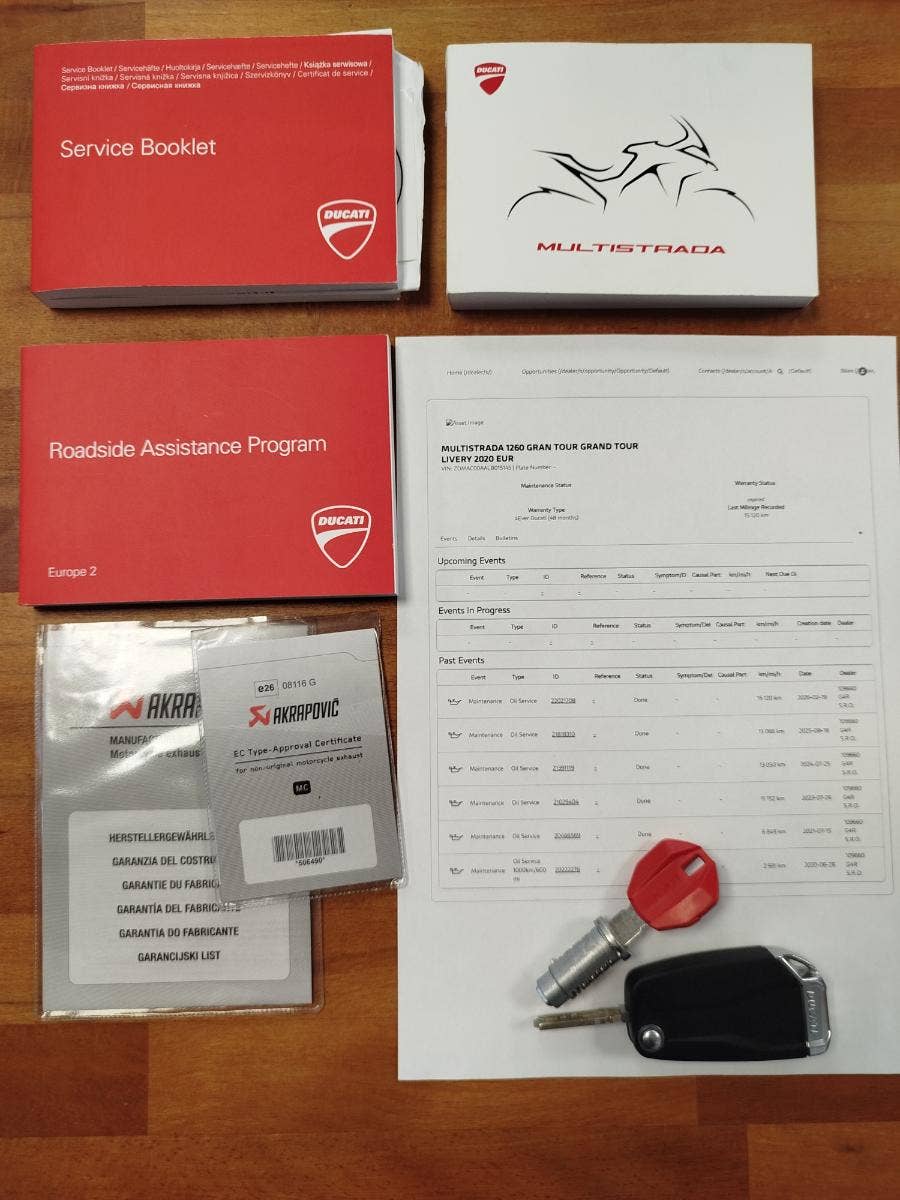 Nabízeme k prodeji krásnou Ducati Multistrada 1260 S Grand Tour z roku: 2020 a nájezdem 15 120 km. Motorka zakoupena jako nová v ČR v autorizovaném dealerství Ducati. Nyní druhý majitel. 2x klíče, servisní kniha, elektronický záznam ze servisní knihy, uživatelský manuál. Motocykl pravidelně servisován pouze v autorizovaném prostředí Ducati, rádi doložíme. Nyní čerstvě po garančním servise rovněž u nás v Ducati. Výměna oleje, olejového filtru, diagnostika, výměna brzdových destiček, celková kontrola. Bohatá výbava čítající: elektronický podvozek, sada bočních kufrů, hlavní stojan, karbonové plexi, vyhřívané rukojeti, handsfree víčko nádrže, miniblinkry, homologovaný výfuk Akrapovič, mlhová světla, kryty rukojetí, sedačky Alcantara.
