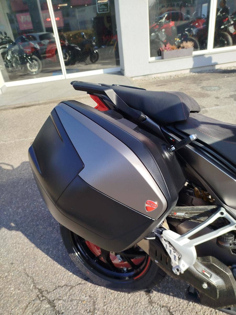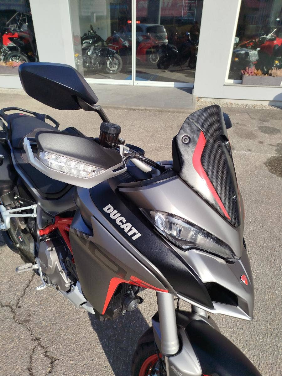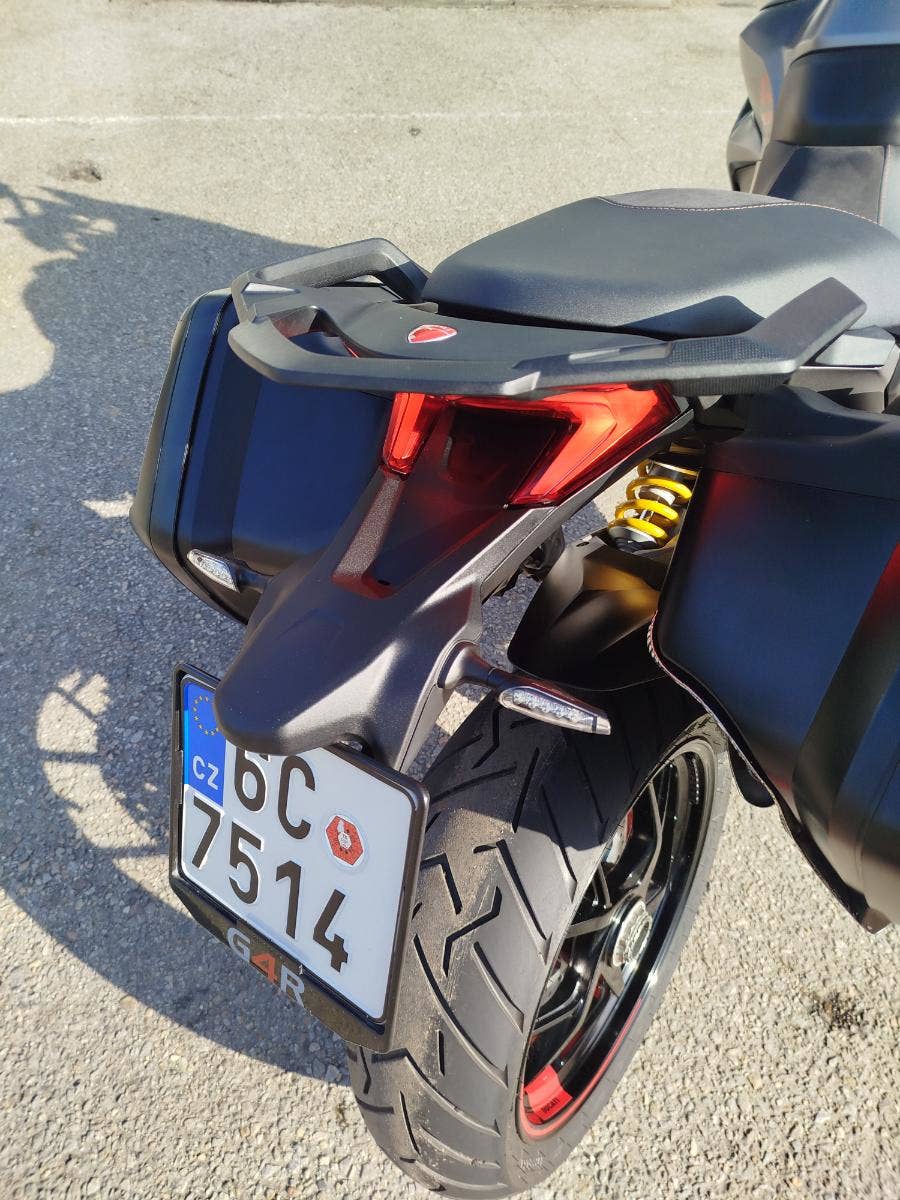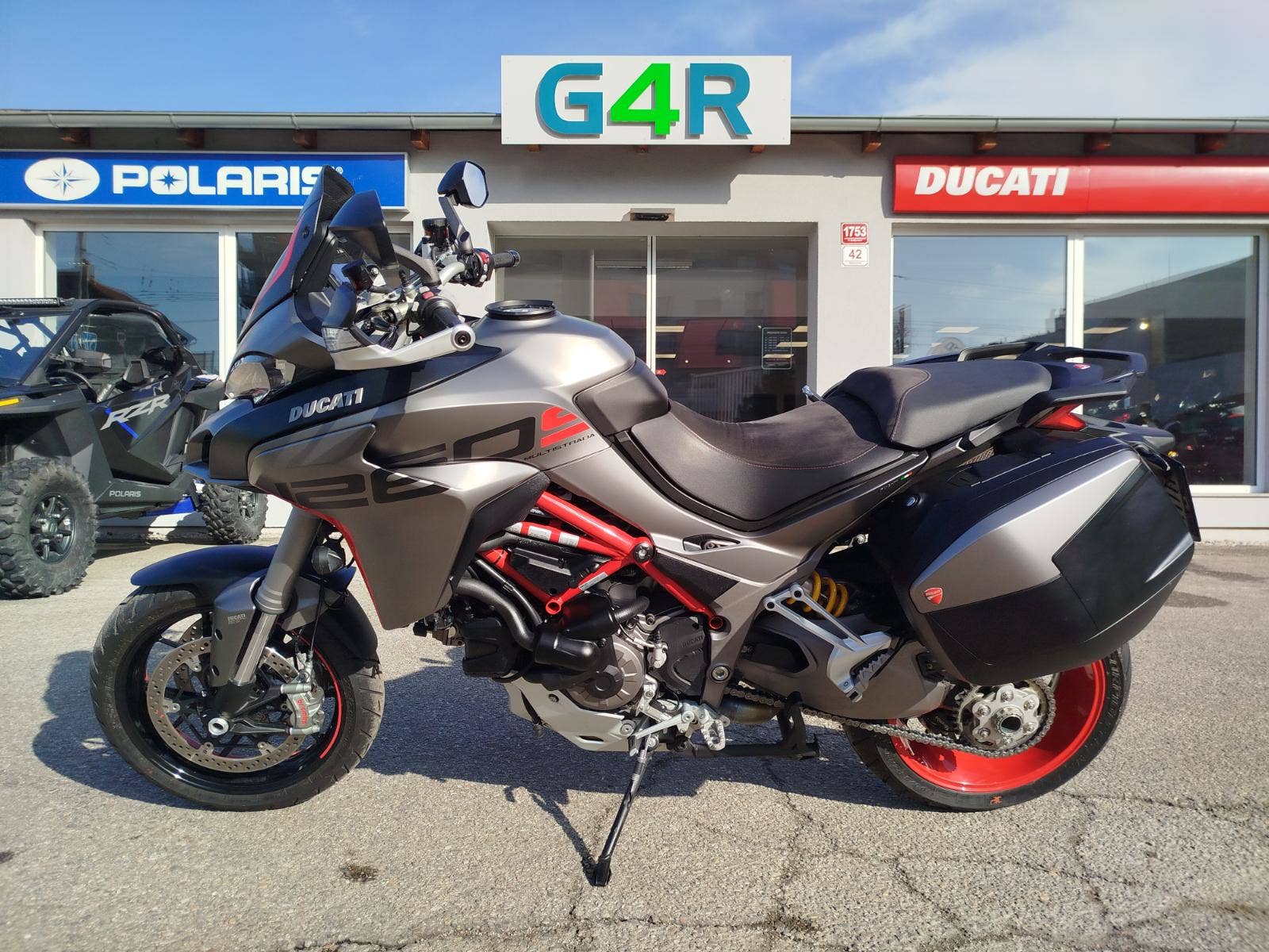 Nabízeme k prodeji krásnou Ducati Multistrada 1260 S Grand Tour z roku: 2020 a nájezdem 15 120 km. Motorka zakoupena jako nová v ČR v autorizovaném dealerství Ducati. Nyní druhý majitel. 2x klíče, servisní kniha, elektronický záznam ze servisní knihy, uživatelský manuál. Motocykl pravidelně servisován pouze v autorizovaném prostředí Ducati, rádi doložíme. Nyní čerstvě po garančním servise rovněž u nás v Ducati. Výměna oleje, olejového filtru, diagnostika, výměna brzdových destiček, celková kontrola. Bohatá výbava čítající: elektronický podvozek, sada bočních kufrů, hlavní stojan, karbonové plexi, vyhřívané rukojeti, handsfree víčko nádrže, miniblinkry, homologovaný výfuk Akrapovič, mlhová světla, kryty rukojetí, sedačky Alcantara.