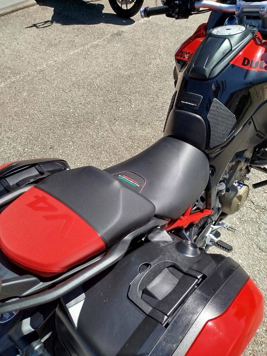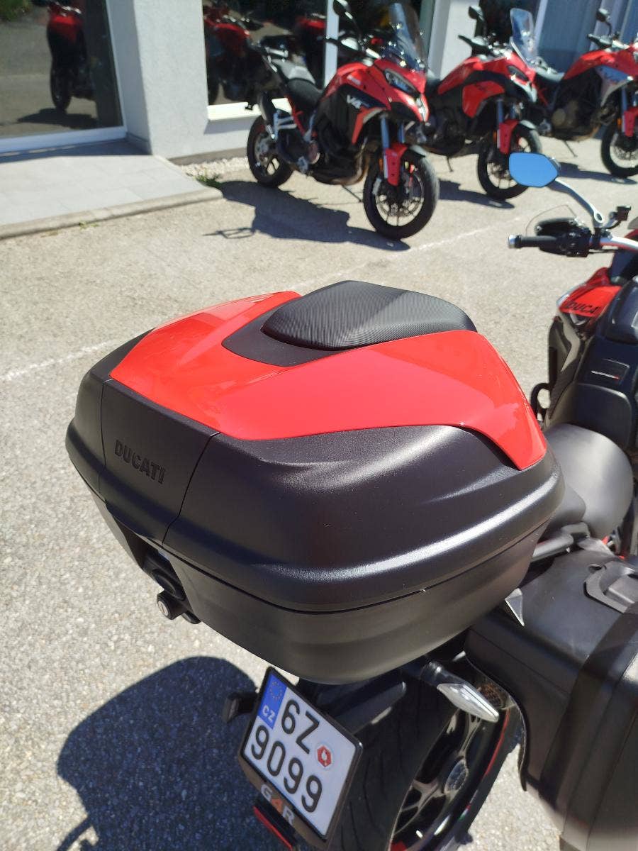 Nabízíme k prodeji naprosto krásnou Ducati Multistrada V4 Pikes Peak. Rok 2023, najeto: 17 405 km. Motocykl zakoupen jako nový v ČR v autorizovaném dealerství Ducati, stále v tovární záruce včetně možného odpočtu DPH. K motocyklu 2x klíč, uživatelský manuál, elektronický servisní záznam ze servisní knihy, faktury k servisu. Motorka po garančním servise, výměně pneumatik a brzdových destiček. Vše velmi dobře zdokladované. Opravdu bohatá nadstandardní výbava čítá: kompetní PPF folii, sadu originálních borčních kufrů, sadu horního kufru, handfree víčko nádrže, kompletní mřížky chladiče (voda + olej), kryty rukojetí, vyhřívané rukojeti, vyhřívané sedadlo řidiče, vyhřívané sedadlo spolujezdce, alarm, snímače tlaku v pneumatikách, padací rám, hlavní stojan, boční tankpad nádrže. Jednoduše krásná motorka s maximální výbavou, péčí a perfektní servisní historií.