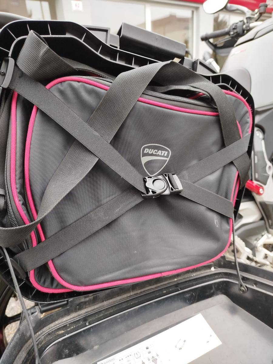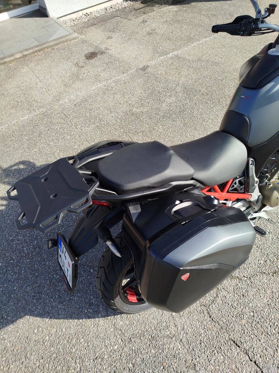 Nabízíme k prodeji krásnou Ducati Multistrada V4S z roku: 2021 a nájezdem: 24 398 km a možným odpočtem DPH. Motorka zakoupena jako nová u nás v autorizovaném dealerství Ducati. 1. majitel, 2x klíče, uživatelský manuál, výpis z elektronické servisní knihy a jako jedna z mála má i tištěnou servisní knihu na přání zákazníka. Perfektní servisní dokumentace pouze z autorizovaného servisu Ducati. Bohatá výbava čítající sadu bočních kufrů včetně vnitřních tašek (k motocyklu dodáme nové barevné boční kryty kufrů), držák tašky/vaku, hlavní stojan, vyhřívané rukojeti, zatmavené nízké plexi včetně deflektorů. Originální plexi, deflektory a boční kapoty jsou k motorce. SPZ na přání je součástí motocyklu. Moc hezká motorka s jasným původem, bohatou výbavou a jasným servisním záznamem.
