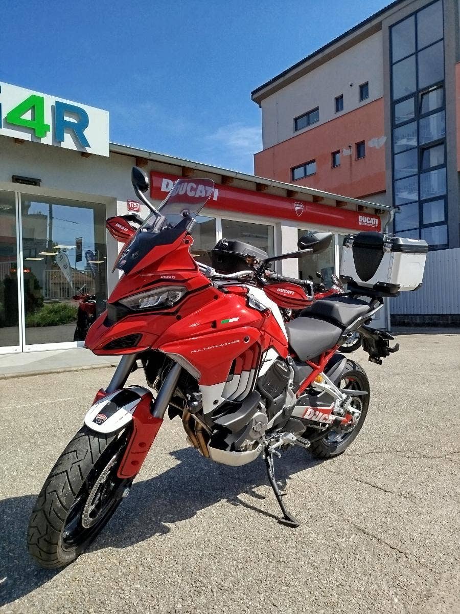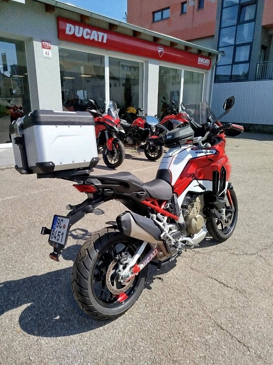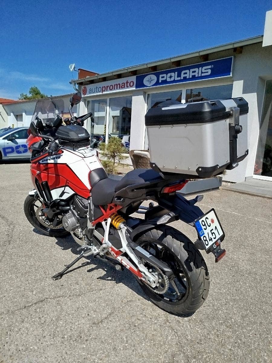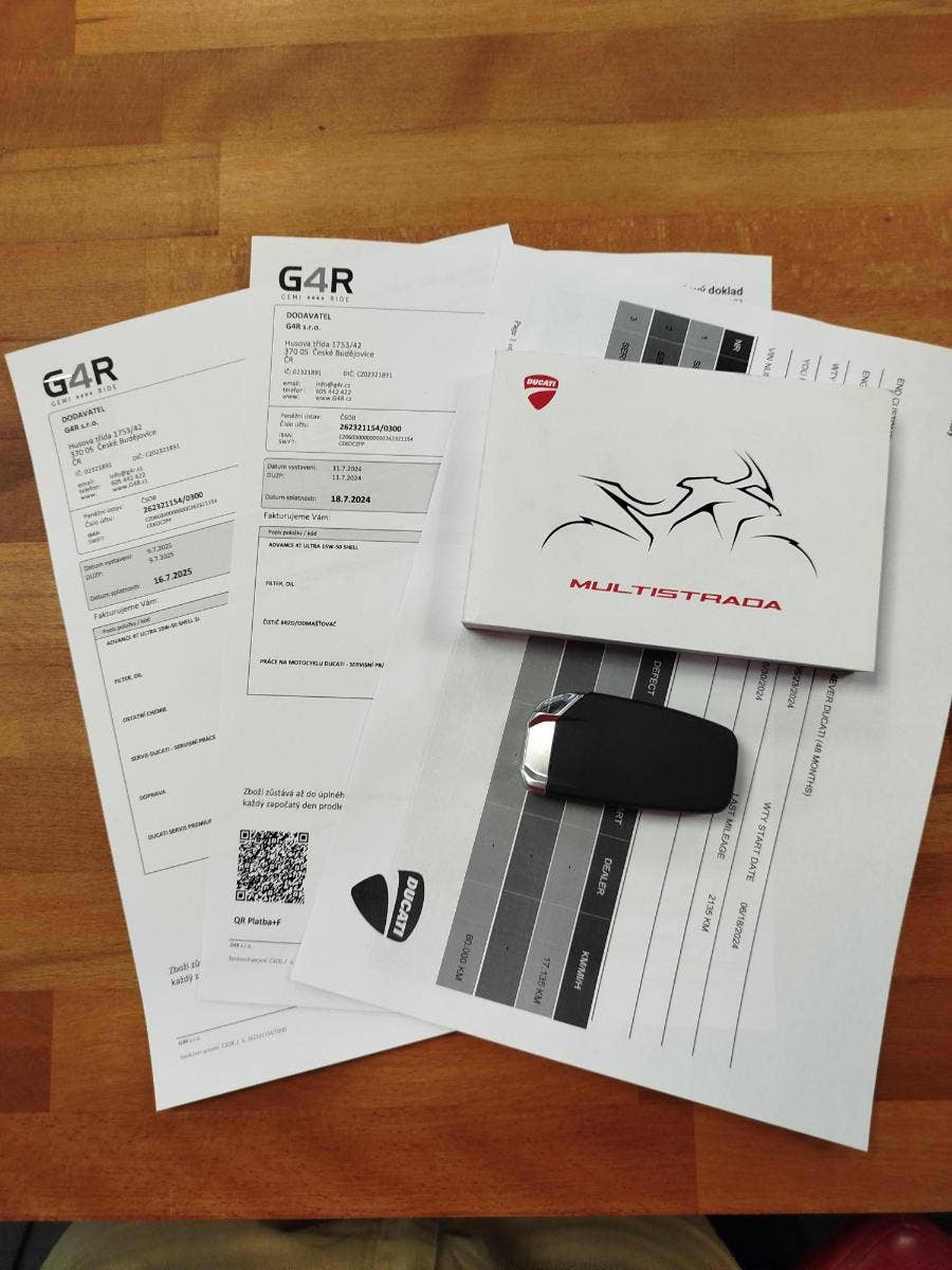 Nabízíme k prodeji zánovní a moc hezkou Ducati Multistrada V4S s radarem, parádním celopolepem a bohatou výbavou. Rok výroby: 2024, najeto pouze 2 135 km. Motorka zakoupená jako nová u nás v autorizovaném dealerství Ducati. 2x klíče, manuál, elektronický záznam servisní knihy. Motorka včetně opravdu bohaté výbavy čítající: horní hliníkový kufr včetně opěrky, tankbag na nádrž, nabíječka USB, vyšší sedlo (+30mm, původní k moto), vyšší plexi kouřové, vyhřívané rukojeti, mlhová světla, hlavní stojan, rozšíření bočního stojanu, kompletní celopolep nalepený na novou motorku. V případě zájmu sundáme nebo nalepíme nový dle vlastního výběru. Veškerá výbava je zánovní stejně jako moto. Pořizovací cena: 650 000, Kč. Pravidelný garanční servis. Nyní čerstvá garanční prohlídka rovněž u nás v autorizovaném dealerství. Výměna oleje, olejového filtru, diagnostika, celková kontrola. Zánovní motorka s jasným původem, tovární zárukou a bohatou výbavou.