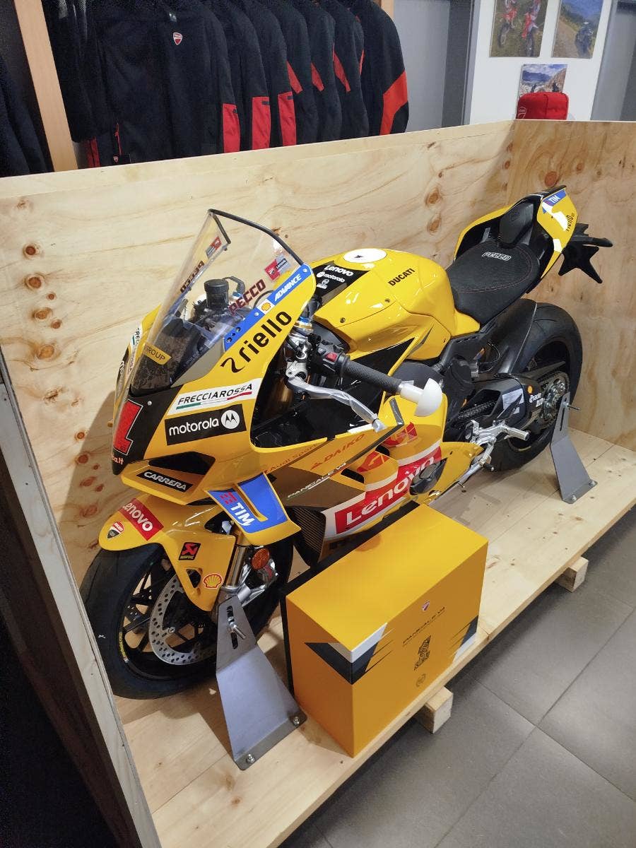 Motocykl je inspirován nejexkluzivnějším livrejem této sezóny: livrejem Giallo Ducati, ve kterém se Desmosedici GP23 týmu Ducati Lenovo vydal na trať při GP Misana. Barva, která má ve sportovní historii Ducati důležitou tradici.