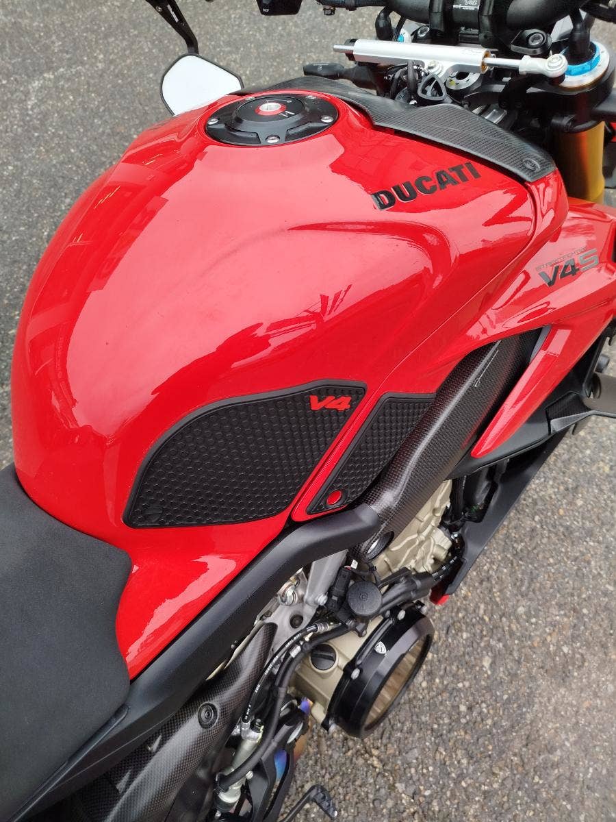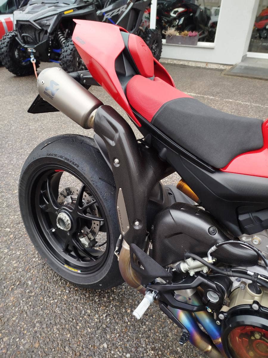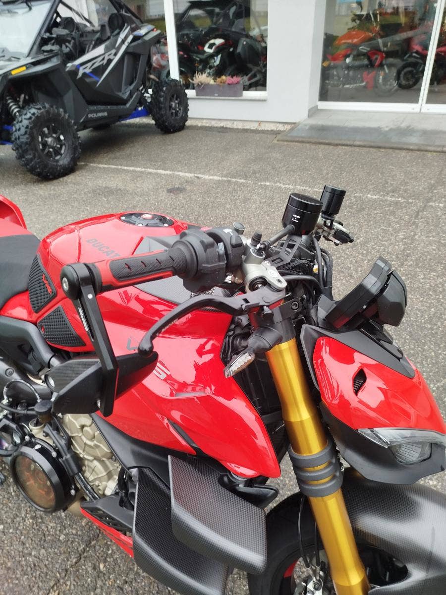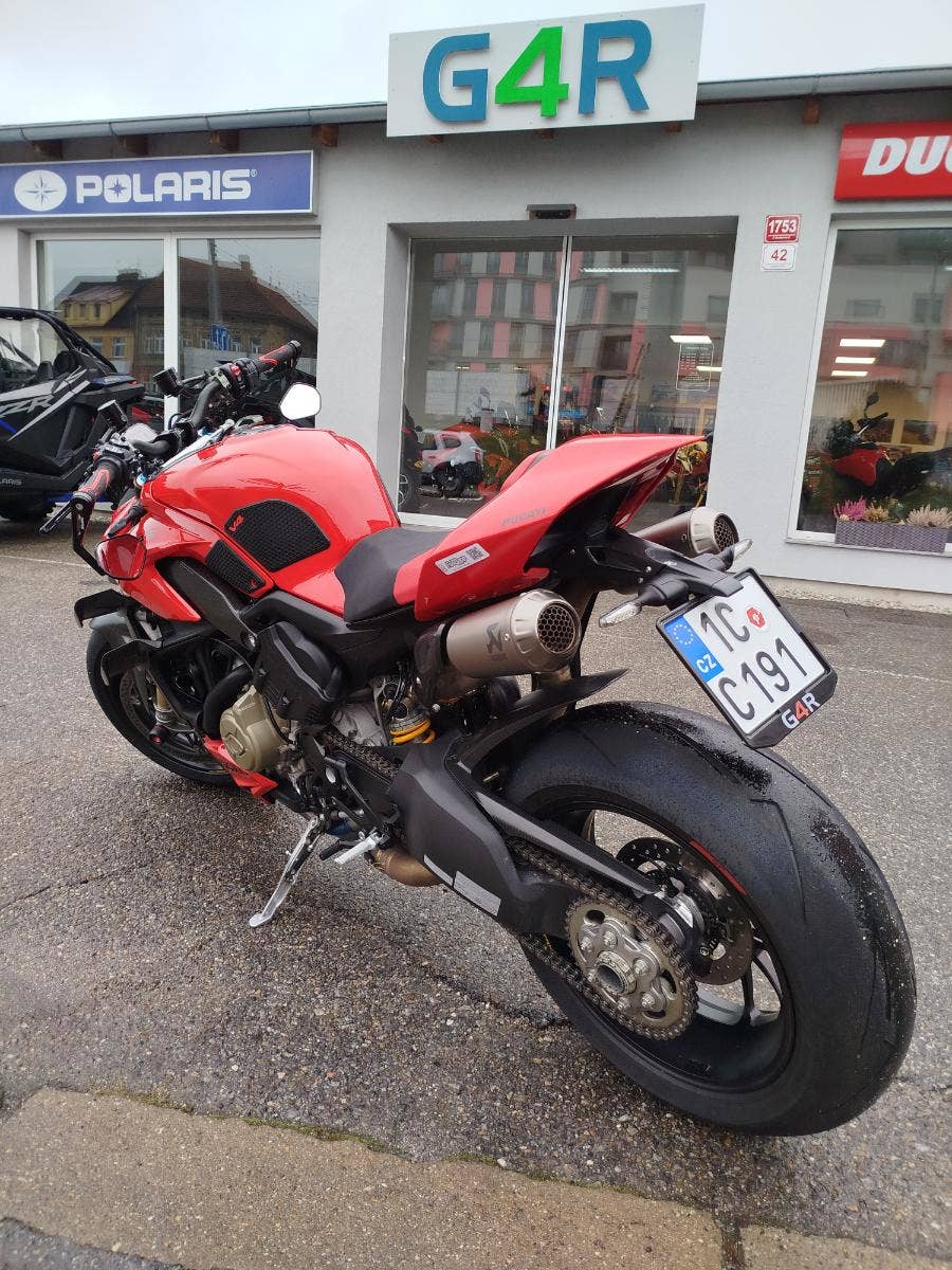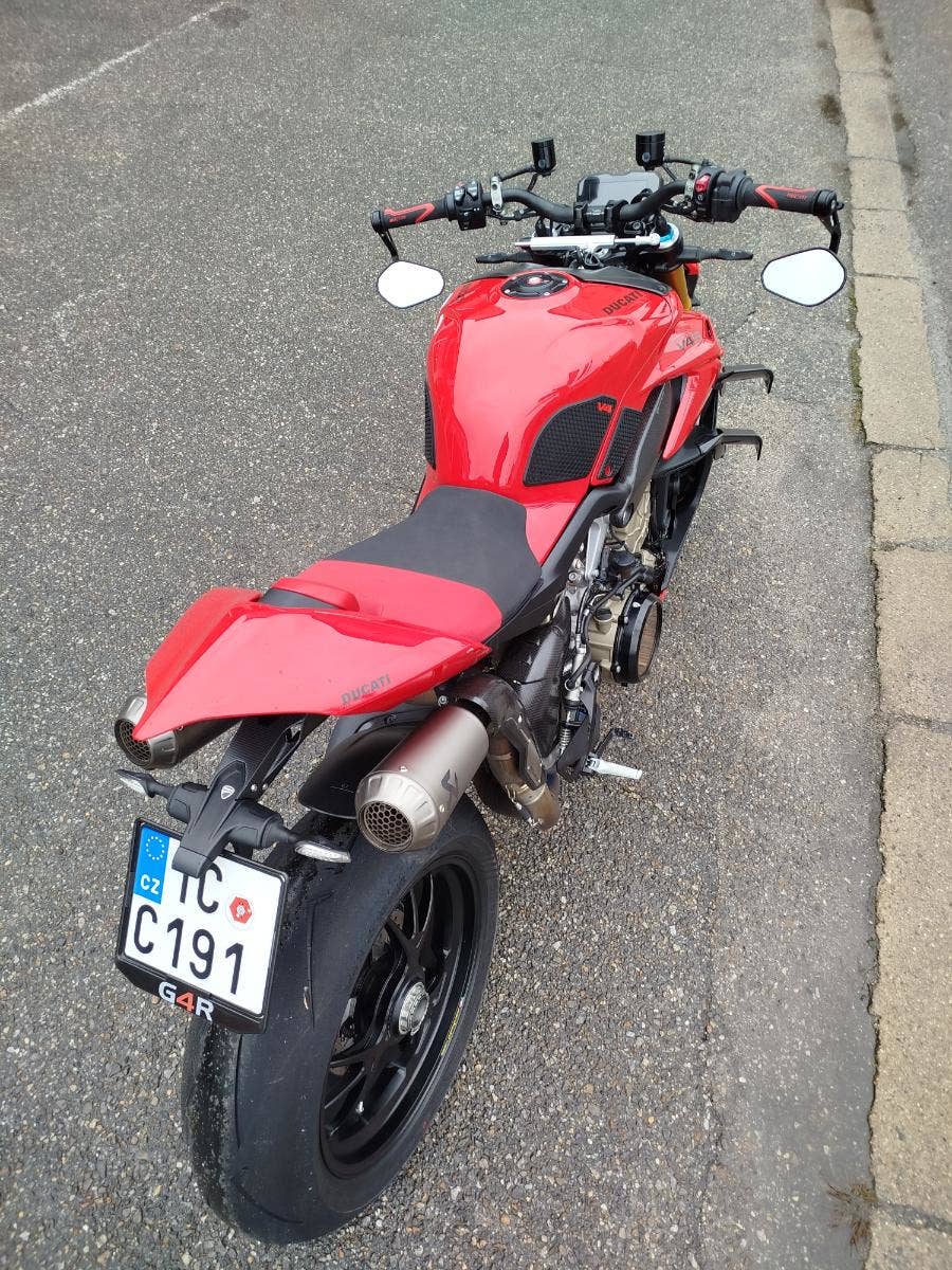 Nabízíme k prodeji krásnou a hlavně totálně nabušenou Ducati Streetfighter V4S z roku 2024 a nájezdem 8 629 km. Motorka zakoupena nová u nás v autorizovaném dealerství Ducati. 1. majitel, 2x klíče, stále tovární záruka, uživatelská příručka, výpis z elektronické evidence, možnost odpočtu DPH. Pravidelný a pouze autorizovaný garanční servis, rádi doložíme. Motorka s nadstandardní výbavou převyšující 400 000,– Kč, která čítá: kompletní laděný výfuk pod sedlo Akrapovič vč. racingové mapy a karbonových krytů, akvárko včetně spojky, dynamické LED blinkry, kratší držák SPZ, racingové víčko Rizoma, stavitelné páčky, černé nádobky, zpětná zrcátka, gripy, tankpad nádrže, karbonový přední blatník, karbonový zadní blatník, karbonová křidélka, slidery v ose kola. mřížky chladiče (voda + olej). Dvě krabice původních dílů včetně výfuku k motorce. Motorka s jasným původem, historií, zárukou a nebývale bohatou výbavou.