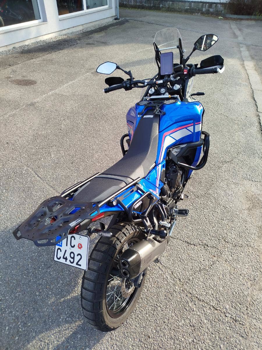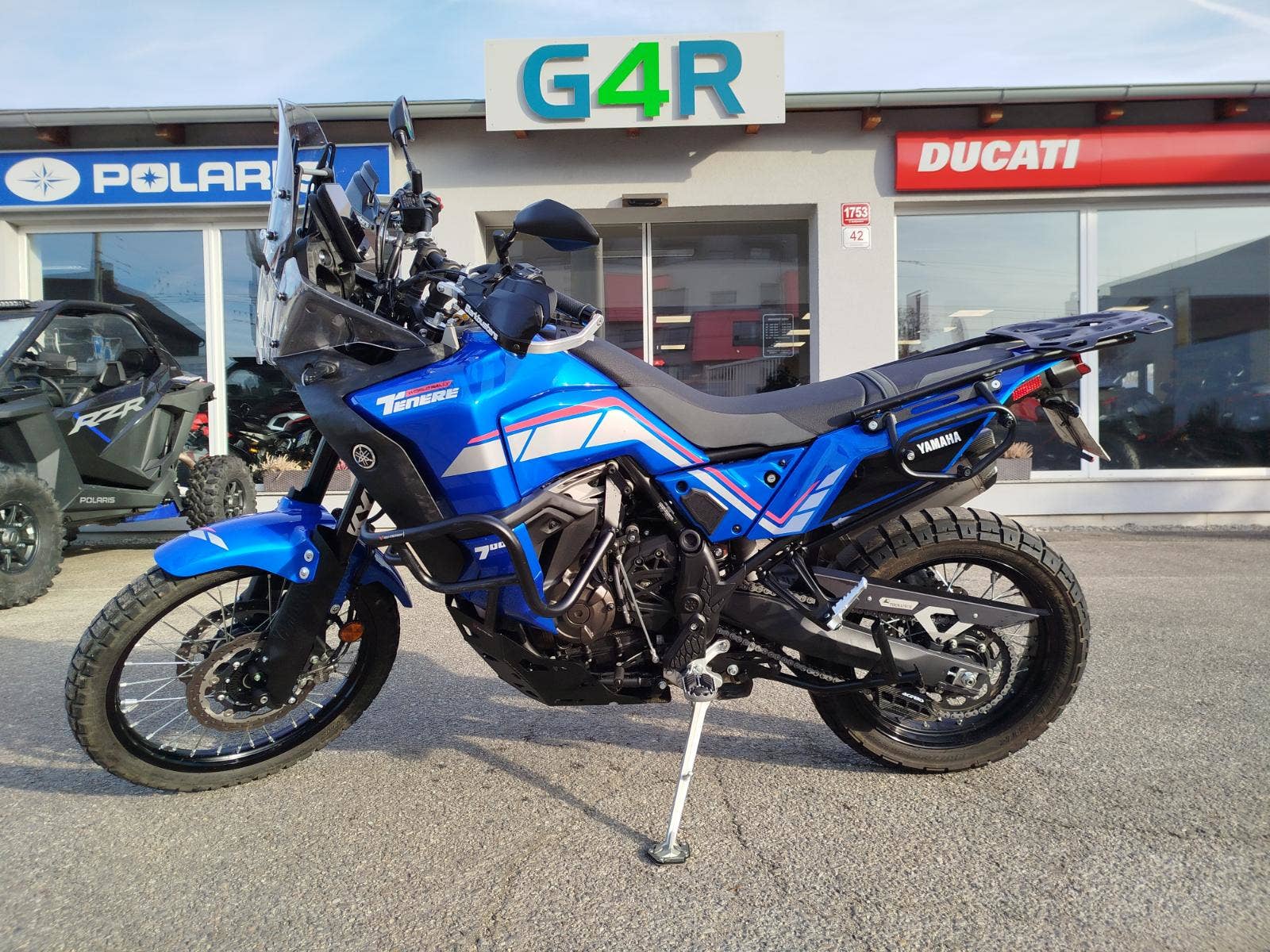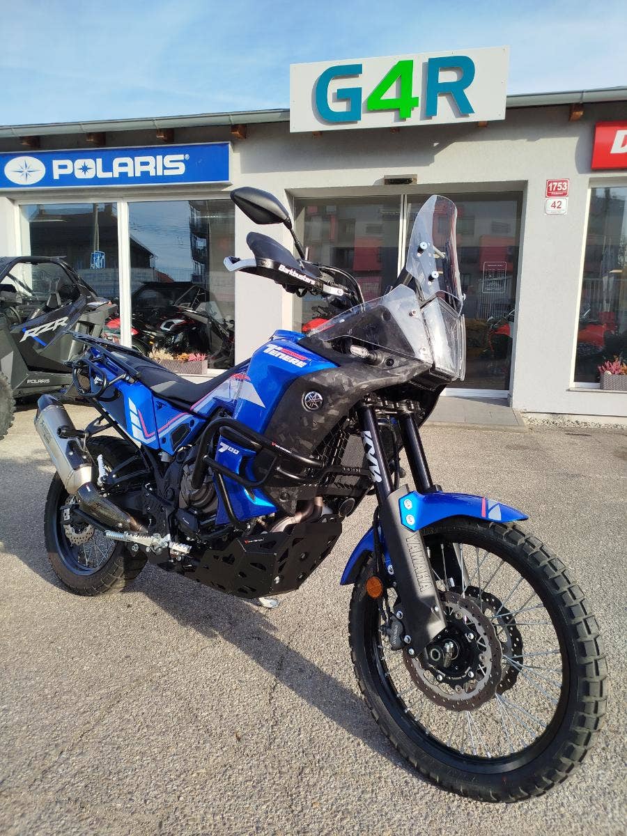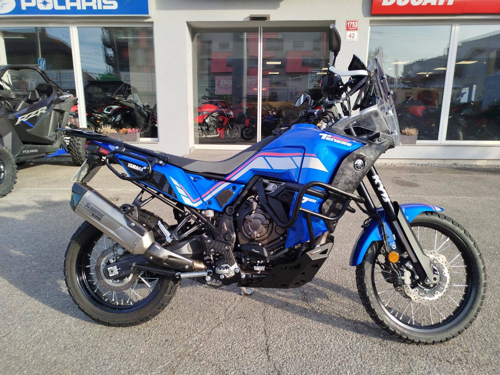 Nabízíme k prodeji krásný motocykl Yamaha Ténéré 700 World Rally z roku 2024 a nájezdem: 6 700 km. Motocykl zakoupen jako nový v ČR v autorizovaném dealerství Yamaha. 1. majitel, 3x klíče, uživatelský manuál, záruka. Pouze autorizovaný garanční servis, nyní čerstvě po garanční prohlídce v autorizovaném prostředí. Výměna oleje, olejového filtru, celková kontrola. Bohatá výbava čítající: padací rám, kryt pod motorem, rally stupačky, držák horního kufru/brašny, rozšíření bočního stojánku, hlavní stojan, kryt řetězu, kryt světlometu. Motorka je v krásném, bezvadném stavu s jasným původem, doloženým servis a bohatou výbavou. Velmi vyhledávaná a těžko sehnatelná verze.